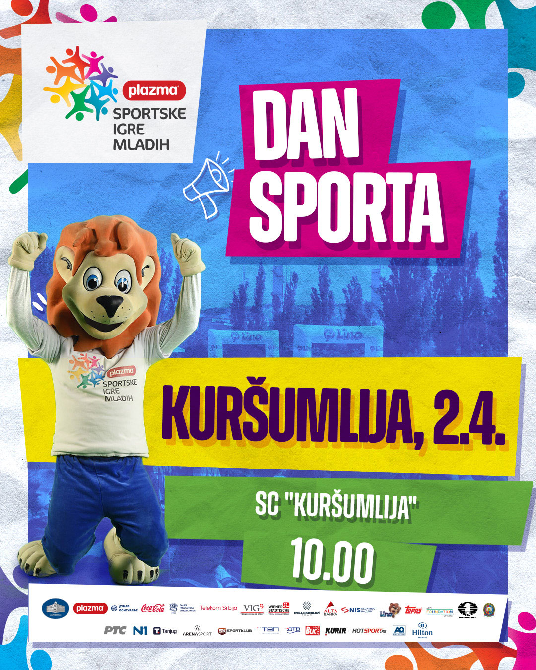 У наставку добре сарадње Плазма Спортких игара младих и Спортског савеза Општине Куршумлија уз техничку подршку Спортског центра Куршумлија, Савеза за школски спорт и локалне самоуправе, деца основних школа ће уживати у такмичењу у атлетици, трци на 60 метара, малом фудбалу, баскету и одбојци и за најмлађе увек узбудљивој игри Лино између две ватре.