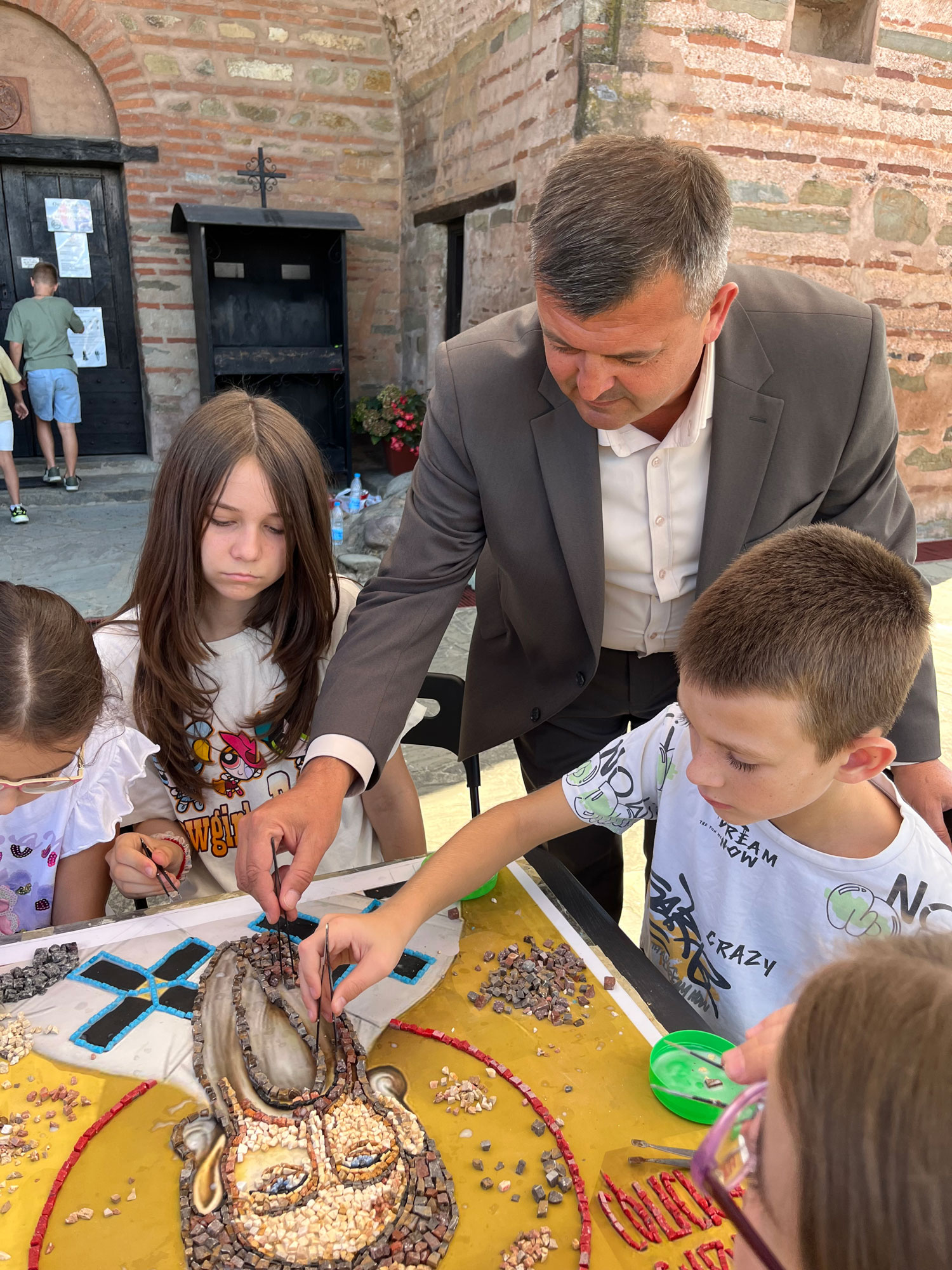 У прелепој и радној атмосфери и дружењу са децом, председник општине Куршумлија Војимир Чарапић, обишао је ученике и поручио им да је породица темељ и основ сваког друштва, те да је потребно да сви заједно чувамо и негујемо праве животне вредности. Мозаик Светог Саве красиће унутрашњост ове духовне светиње, баш као и мозаици Стефана Немање и његове супруге Свете Анастасије.